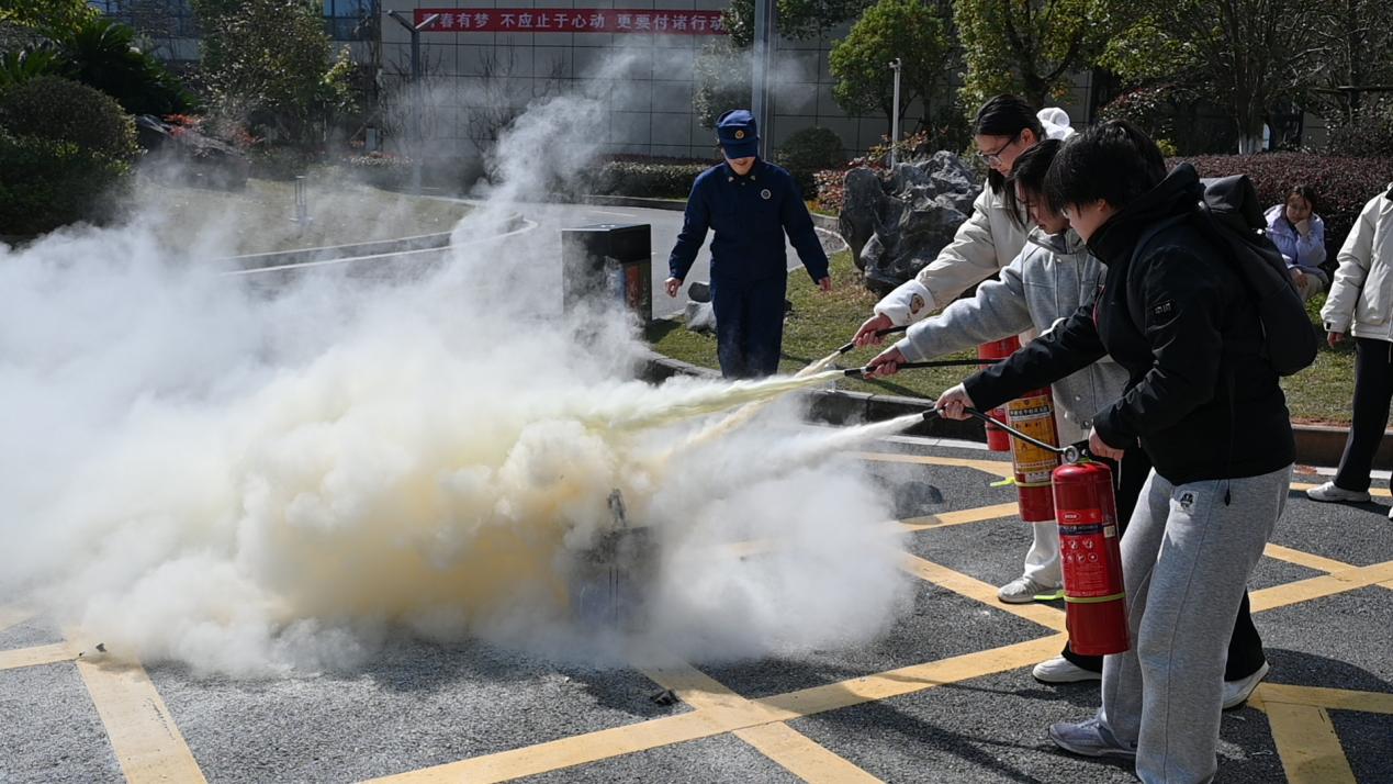 随后,消防官兵为师生演示了如何使用消防灭火器,并邀请师生参与使用,广大学生热情高涨、积极参与,均顺利将火盆中的火顺利熄灭。