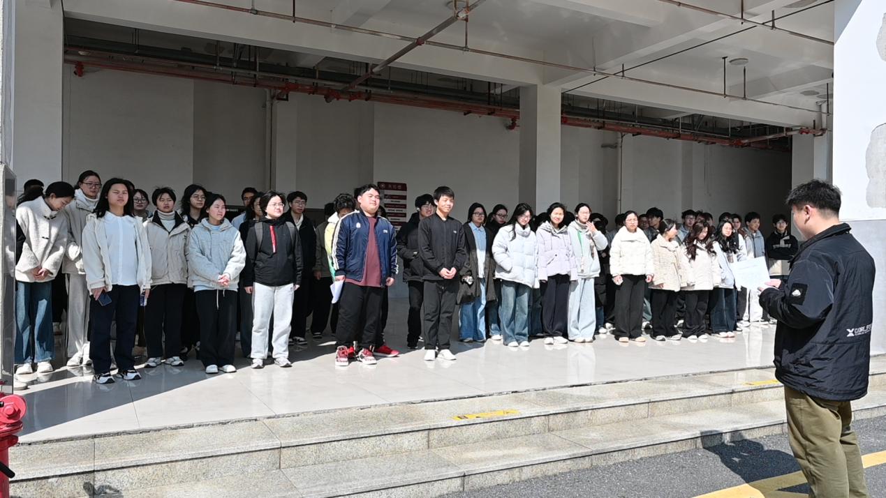 为认真贯彻落实习近平总书记关于安全生产系列重要指示精神,牢固树立人民至上、生命至上理念,提高师生消防安全防范意识,增强应对突发火情的处置能力,3月11日上午,数字产业学院在天佑楼开展了“筑牢校园安全防线”消防应急疏散演练。学院教职工、物业人员及2025级本科生参加活动。
